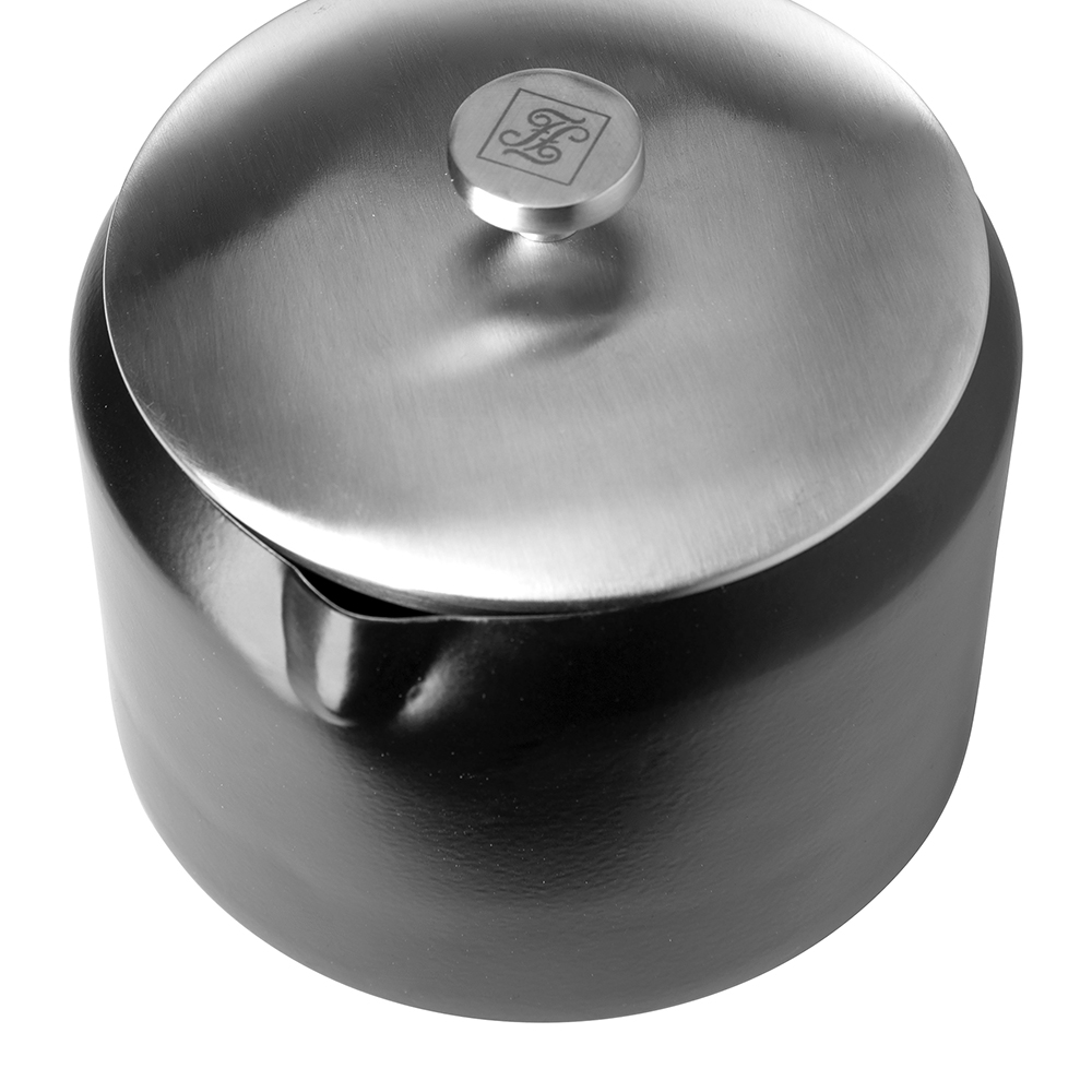 Das Milch- und Zucker-Set DUO vereint formschöne Eleganz mit modernem Design. Die schwarz beschichtete Metalloberfläche und die matt gebürstete Struktur setzen einen edlen Kontrast, der jedes Frühstück zu einem besonderen Moment macht. Das dezente Logo-Icon auf den Griff fügt sich harmonisch ein und setzt einen stilvollen Akzent. DUO ist nicht nur funktional, sondern ein Ausdruck von Raffinesse und Charme – ideal für jedes moderne Zuhause, das Wert auf zeitlose Ästhetik legt. Jedes einzelne Stück wird in aufwendiger Handarbeit gefertigt und es entstehen individuelle Unikate mit individuellen, charakteristischen Merkmalen.