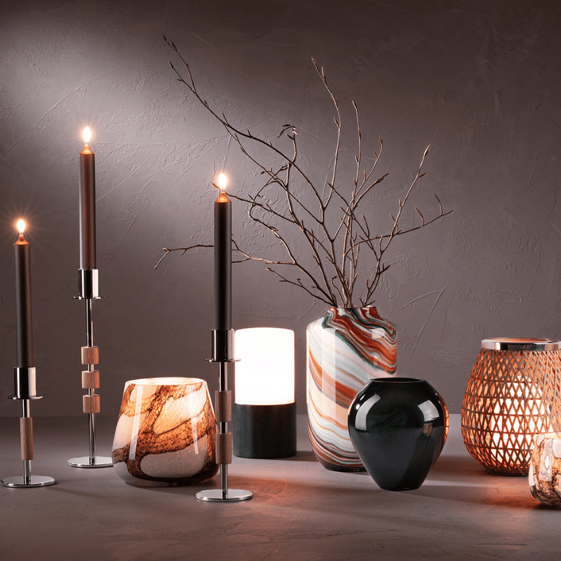 Schlicht, zeitlos und dabei doch so elegant: mit den Kerzenleuchtern RITMO sind Sie einfach immer auf der richtigen Seite. Ob beim romantischen Candle-Light-Dinner zu zweit, als Highlight auf der großen festlichen Tafel oder als stimmungsvolle Lichterinsel auf dem Sideboard: das schlichte und geradlinige Design fügt sich überall dezent und harmonisch in die bestehende Dekoration ein. Darüber hinaus beeindrucken diese Leuchter mit der Kombination aus edler, mattschwarzer Oberfläche und den besonderen Akzenten des glänzenden, hochwertig veredelten Metalls. Der großflächige Fuß sorgt für einen sicheren Stand und ein ruhiges Abbrennen der Stabkerzen. Drei unterschiedliche Größen lassen sich hervorragend immer wieder neu miteinander kombinieren.