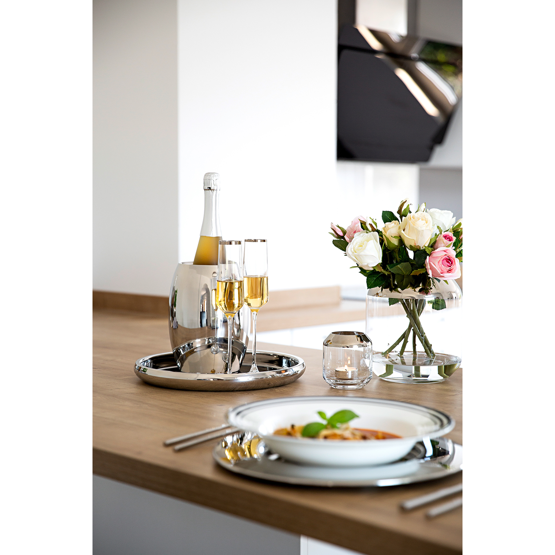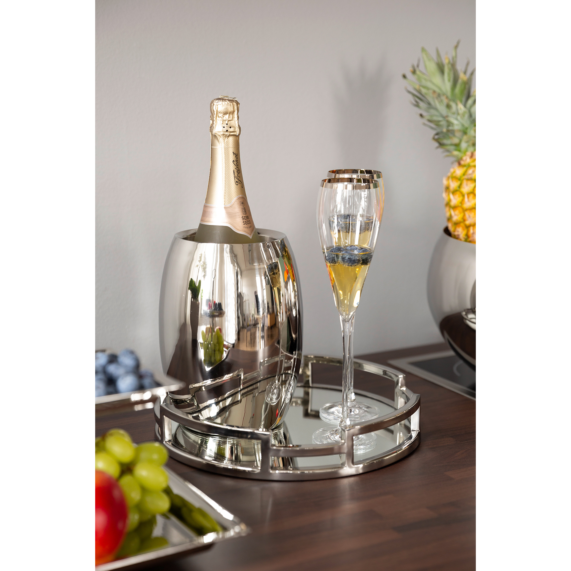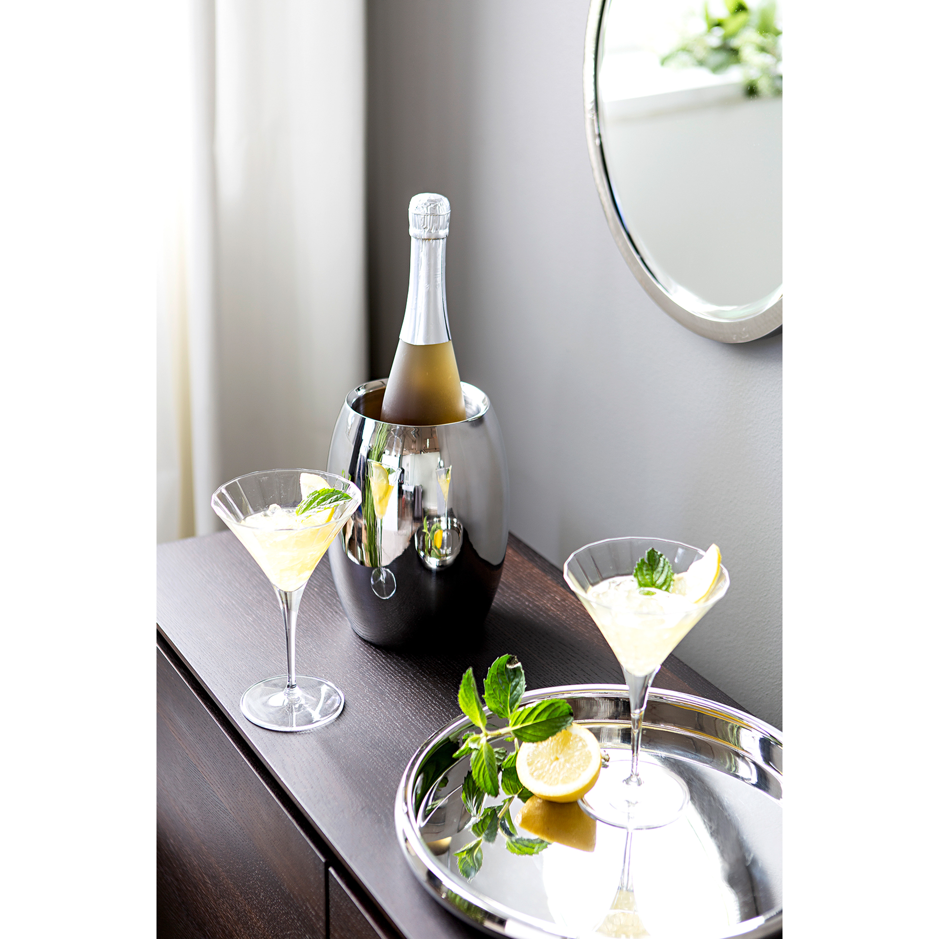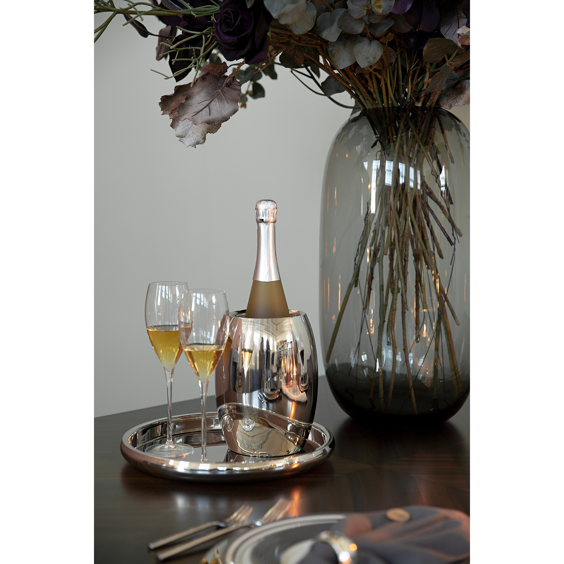Der Weinkühler APOLLO begeistert mit seinem formschönen und zurückhaltendem Design. Elegante Rundungen und ein beindruckender Glanz machen ihn zu einem Schmuckstück für Buffet und Bar. Dank der schlichten und unaufdringlichen Formsprache fügt er sich harmonisch in nahezu jeden bestehenden Dekorationsstil ein und dient zu den unterschiedlichsten Anlässen als unverzichtbares Tischaccessoire. Der Weinkühler ist aus hochglänzend poliertem und pflegeleichtem Edelstahl gefertigt. Die doppelwandige Ausführung sorgt für eine gute Isolierung und garantiert so viele kühle Drinks und Erfrischungen für Sie und Ihre Gäste.